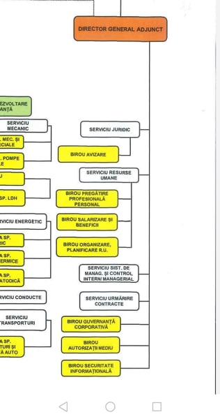 Și pentru ca să ne lămurim ca Serviciul Mediu nu e la o alta frăție am studiat atent organigrama Conpet.. Și p’tiu drace ce sa vedem: serviciul mediu este acum Birou Autorizații Mediu, dar la loc de cinste în directa coordonare a directorului adjunct…