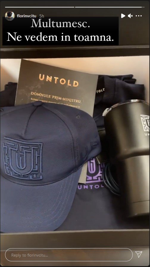 Acesta a postat, pe pagina sa de Instagram, imagini cu un pachet cu materiale promoţionale din partea organizatorilor, alături de mesajul „Mulţumesc. Ne vedem în toamnă”.