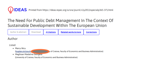 Ambele sunt identice (inclusiv aceleași greșeli de ortografie) cu excepția înlocuirii ,,Facultatea de Economie și Administrarea Afacerilor” (Bușe și Nicu Marcu) cu ,,Institutul Național de Cercetări Economice Costin K. Kirițescu (Franc și Nicu Marcu). Numitor comun: Nicu Marcu.