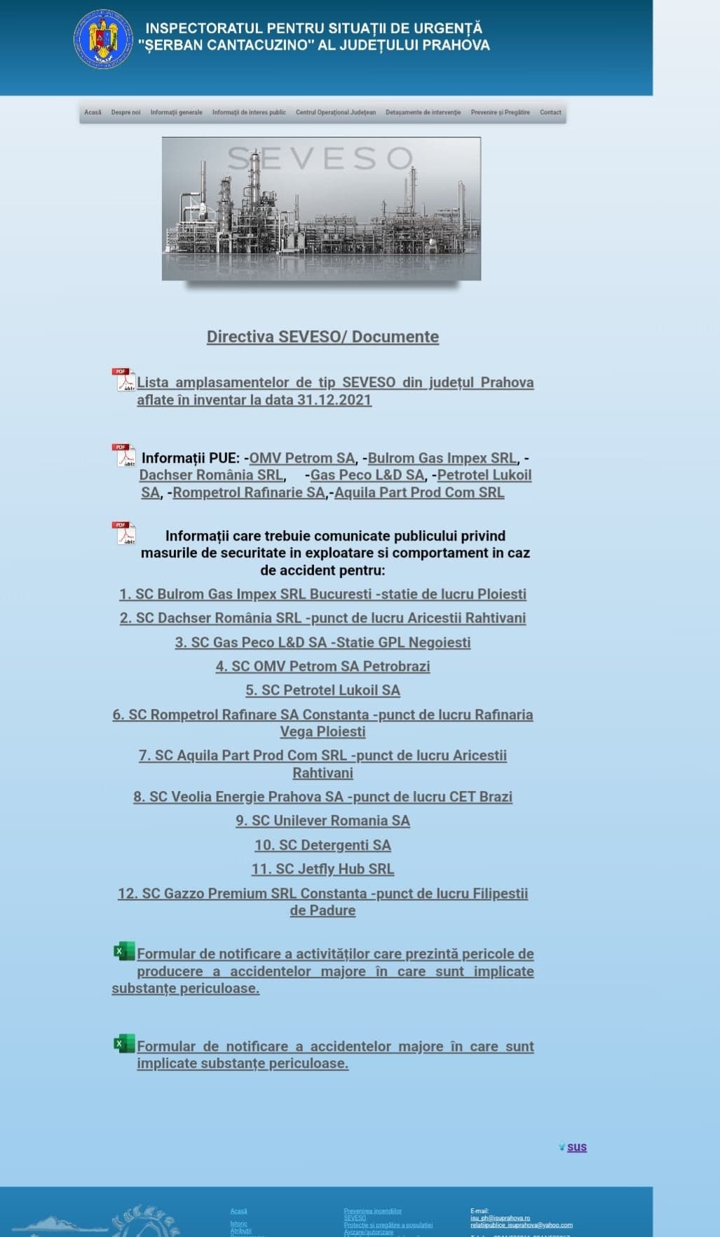 Pe site-ul oficial al Inspectoratului pentru Situații de Urgență “Şerban Cantacuzino” al judetului Prahova se regaseste, MARE, Directiva SEVESO.