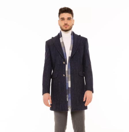 Contextul dictează nuanța și textura. În zona business, paltoane bărbătești bleumarin herringbone peste costum albastru închis sau gri mediu păstrează autoritatea, fără rigiditate. Butonii metalici trimit un semnal modern, dar rămân temperați.